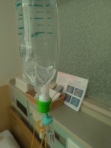 麻酔のための点滴を確保していざ出陣て状況です。怖いです色々な意味で、